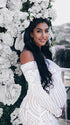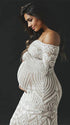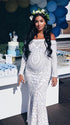 Momnfancy White Lace Off Shoulder Mermaid Bodycon Wedding Gown Elegant Formal Baby Shower Maternity Maxi Dress