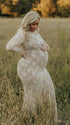 Momnfancy White Lace Ruffle Mermaid Long Sleeve Bodycon Elegant Boho Photoshoot Maternity Maxi Dress