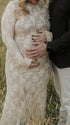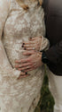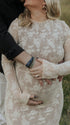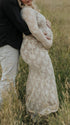 Momnfancy White Lace Ruffle Mermaid Long Sleeve Bodycon Elegant Boho Photoshoot Maternity Maxi Dress creates an elegant bohemian maternity look in pristine white lace. Delicate lace patterns blend harmoniously with layered ruffled mermaid hem, while long sleeves add a touch of graceful charm. The bodycon silhouette perfectly follows your pregnancy curves, crafted from comfortable and breathable milk silk composite fabric that gently supports your bump while ensuring all-day comfort. Ideal for maternity photoshoots, baby showers, or romantic wedding occasions, this dress pairs beautifully with a woven hat and natural stone accessories to complete a artistic boho ensemble, helping you radiate captivating elegance at every special moment.
