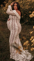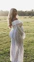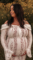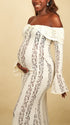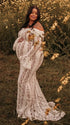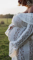 Momnfancy White Off Shoulder Lace Bandeau Tie Front Mermaid Bandage Going Out Photoshoot Maternity Maxi Dress