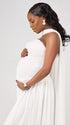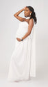 Momnfancy White Ruched Bandeau Wrap Backless Cocktail Tie Back Evening Gown Photoshoot Maternity Maxi Dress