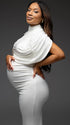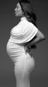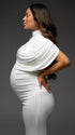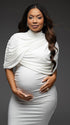 Momnfancy White Ruched Irregular 2-in-1 Bodycon Photoshoot Maternity Midi Dress