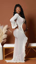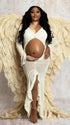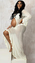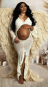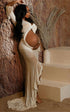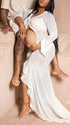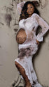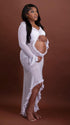 Momnfancy Mesh Ruffle Cut Out Crop Irregular Split Sheer Photoshoot Maternity Maxi Dress