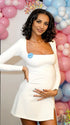 Momnfancy White Square Neck Side Slit Maternity Baby Shower Mini Dress