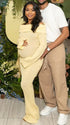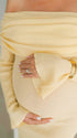 Momnfancy Yellow Knit Off Shoulder Flare Sleeve Mermaid Bodycon Elegant Vacation Photoshoot Baby Shower Maternity Maxi Dress