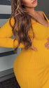 Momnfancy Yellow Knitting V-Neck Long Sleeve Bodycon Plus Size Baby Shower Maternity Maxi Dress